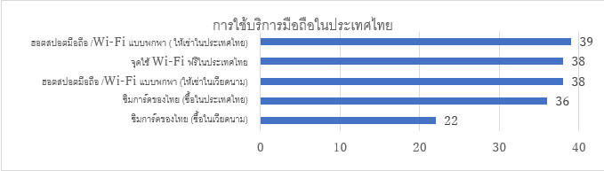Wi-Fi แบบพกพาเป็นที่นิยมมากกว่าซิมการ์ดในหมู่ผู้ตอบแบบสอบถามทั้งหมด เมื่อแยกตามเพศจะสามารถบอกได้ว่า เพศชายใช้ ‘ฮอตสปอตจากโทรศัพท์มือถือ/Wi-Fi แบบพกพา (เช่าในเวียดนาม)’ สูงกว่าเพศหญิงถึง 10% (ชาย 43.1%, หญิง 31.0%) ส่วนเพศหญิง ทั้ง ‘ฮอตสปอตจากโทรศัพท์/Wi-Fi แบบพกพา (เช่าในเวียดนาม)’ และ ‘ซิมการ์ดไทย (ซื้อในไทย)’ ติดอันดับสูงที่สุดด้วยเปอร์เซ็นต์เดียวกัน แสดงให้เห็นว่าผู้หญิงชาวเวียดนามมีแนวโน้มที่จะซื้อซิมการ์ดไทยในประเทศไทยมากกว่า
