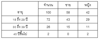 - จำนวนผู้ตอบแบบสอบถาม : 100 คน