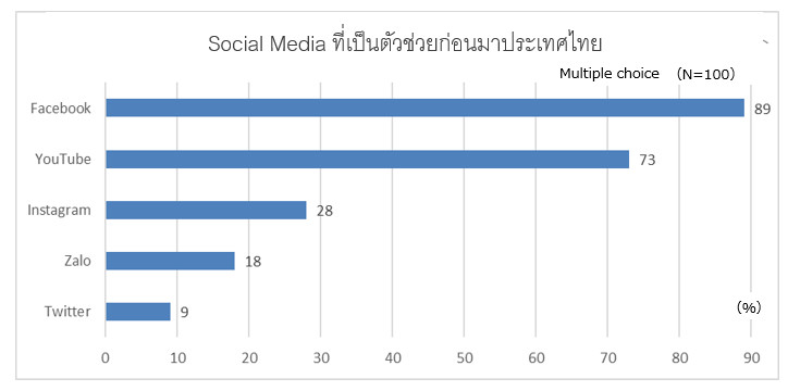 Facebook คือโซเชียลมีเดียที่นักเดินทางชาวเวียดนามคิดว่ามีประโยชน์ที่สุดก่อนเดินทางมาประเทศไทย ซึ่ง Facebook และ YouTube คือช่องทางหลักที่นิยมในเวียดนาม