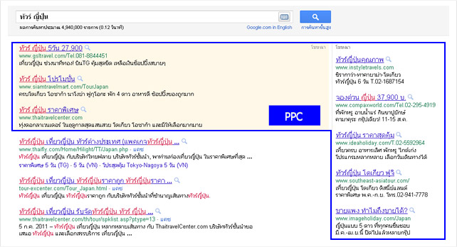 “PPC” หรือ “Pay Per Click” คือการลงโฆษณาบน Search Result Page (หน้าแสดงผลการค้นหา) ของ Search Engine โดยต้องประมูล Keyword เพื่อที่จะให้โฆษณาไปปรากฎอยู่เมื่อมีการค้นหา Keyword นั้นๆ