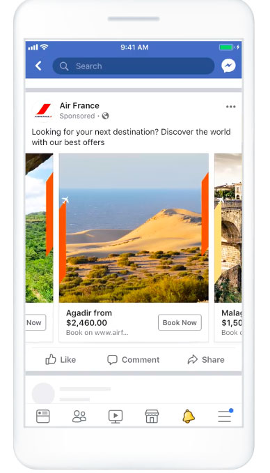 เป็นการโฆษณาแบบภาพสไลด์ในแนวนอน ซึ่งเลือกใช้รูปภาพและวิดีโอได้มากถึง 10 รายการในหนึ่งโพสต์ ทำให้แสดงสินค้า บริการ หรือโปรโมชั่นพิเศษของแบรนด์ให้กลุ่มเป้าหมายได้มากขึ้น อีกทั้งยังใส่ปุ่มกดเพื่อให้ผู้ใช้งานเข้าไปยังเว็บไซต์หรือหน้าดาวน์โหลดแอปพลิเคชั่นได้ด้วย