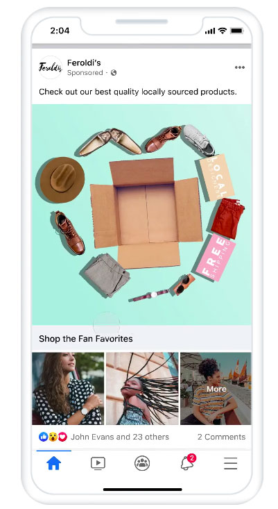 เป็นอีกหนึ่งรูปแบบที่โฆษณาด้วยการรวมรูปภาพและวิดีโอเข้าไว้เป็นคอลเลกชั่นเดียวกัน เพื่อให้กลุ่มเป้าหมายได้เลือกชมและซื้อสินค้าหรือบริการได้ง่ายขึ้น โดยจะมีภาพหน้าปกและภาพรายละเอียดอีก 3 ภาพ เมื่อผู้ใช้งานแตะที่หน้าจอก็จะเข้าสู่โหมด Instant Experience ช่วยให้ผู้ใช้งานได้สัมผัสประสบการณ์ที่สะดวก น่าสนใจ และเพิ่มความต้องการซื้อสินค้าหรือบริการ